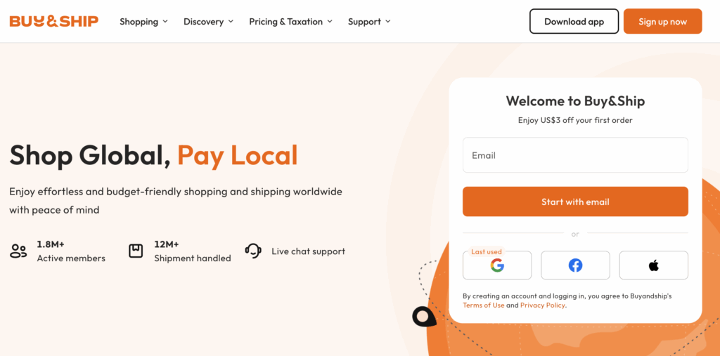 Go to Buy&Ship website to log in or register as a member.